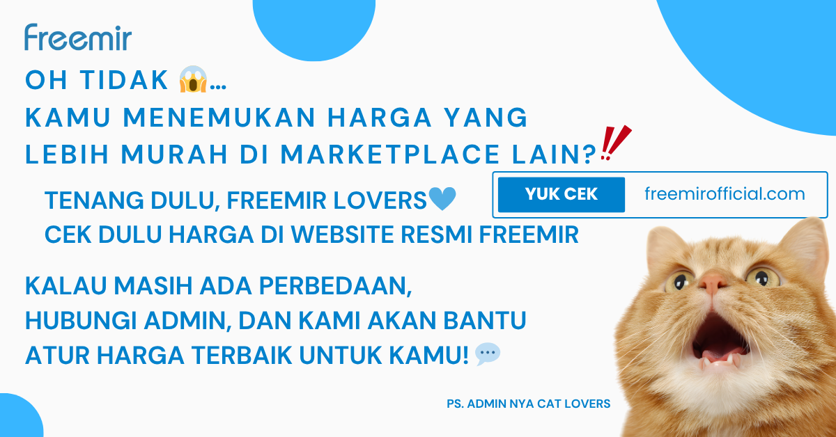 Harga di website freemir adalah harga resmi dari gudang pusat freemir yang sudah mengalami penyesuaian harga agar lebih murah. Harga di marketplace bisa berbeda karena promo, potongan, atau penjual pihak ketiga.
