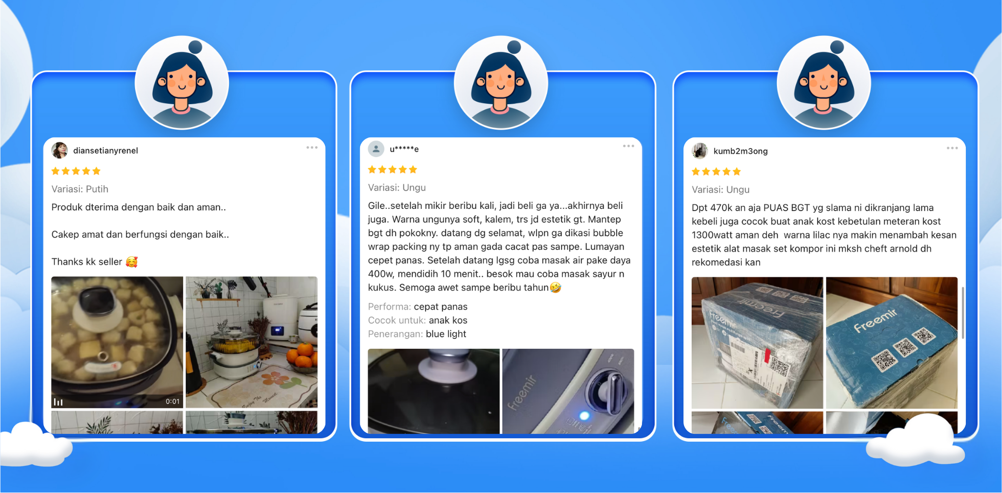 Pembeli bisa langsung berinteraksi dengan tim Customer Success Freemir tanpa perantara pihak ketiga untuk mendapatkan bantuan, garansi, dan konsultasi produk lebih cepat dan personal.