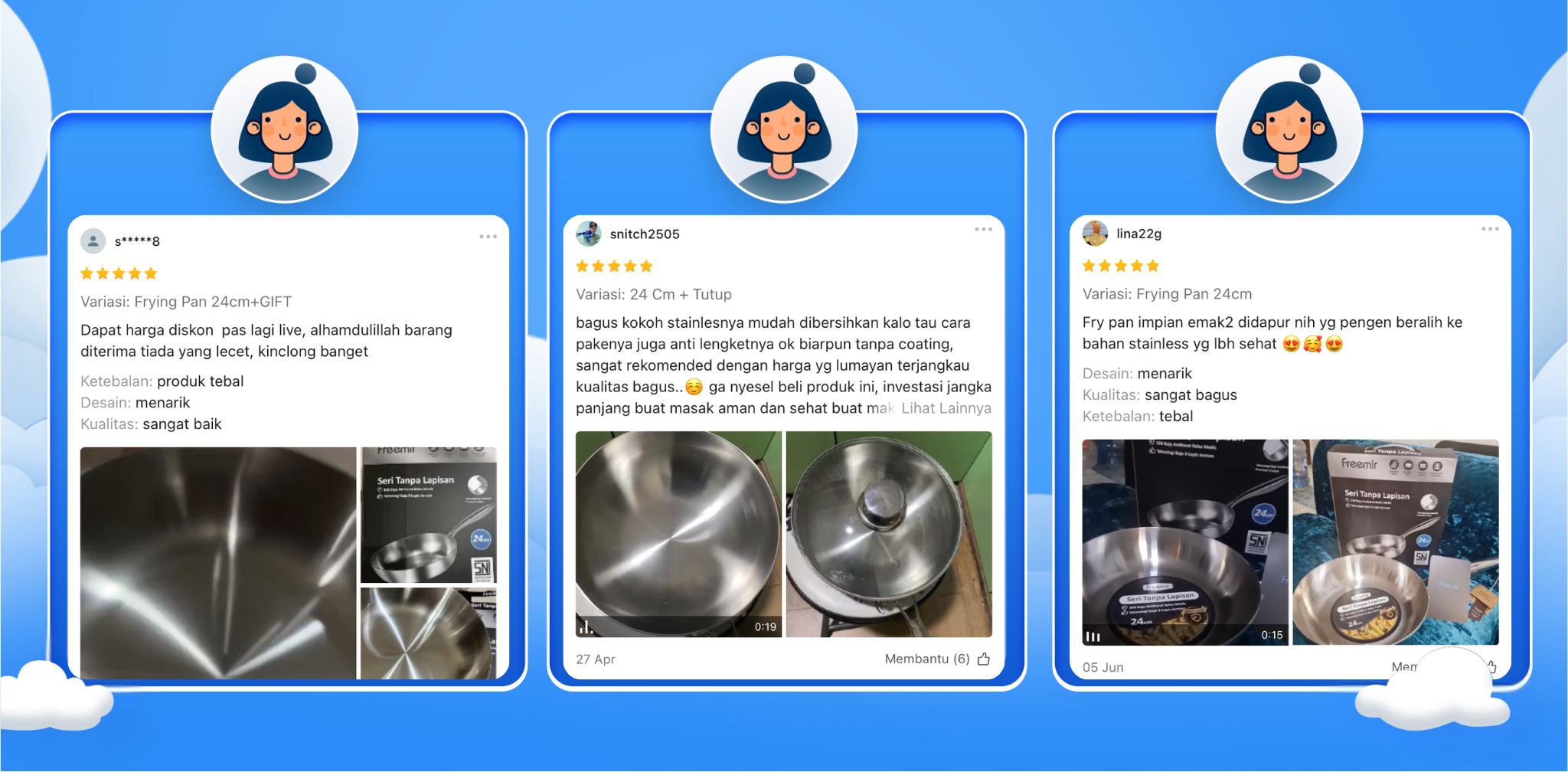 Pembeli mendapat harga yang lebih hemat karena tidak ada potongan biaya platform atau komisi dari marketplace. Harga yang ditampilkan adalah harga langsung dari brand Freemir.