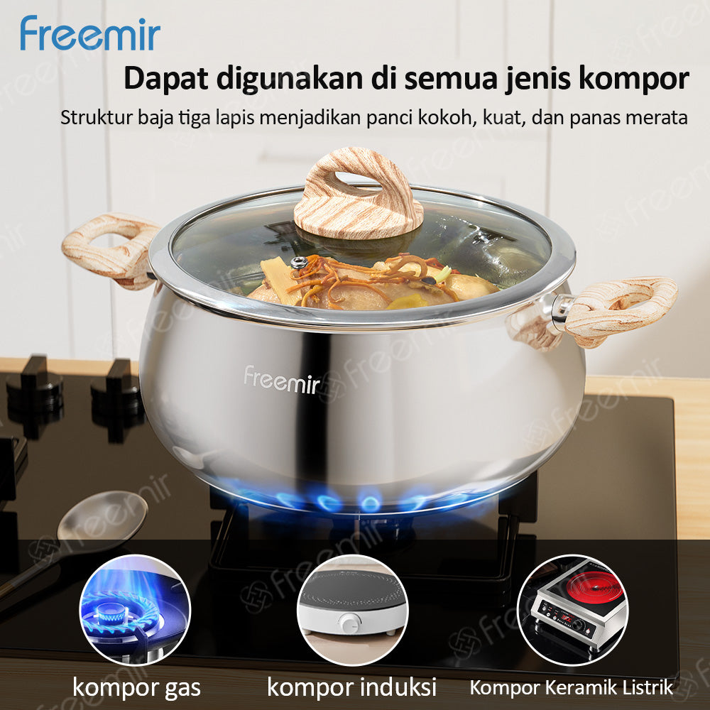 Accompany your cooking moments with the Gemoy Series Double Handled Pot , an elegant pan made of premium 304 stainless steel that is strong, hygienic, and rust-resistant. Designed with a three-layer composite base (1.0mm aluminum + 0.4mm stainless steel 201) to ensure even and efficient heat on all types of stovetops, including induction stovetops .