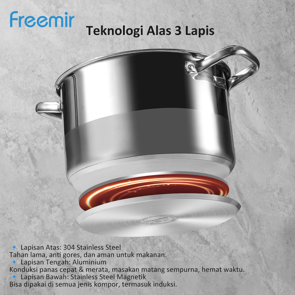 Freemir 26 CM Double Bottom 6L Stainless Steel Pan with Lid