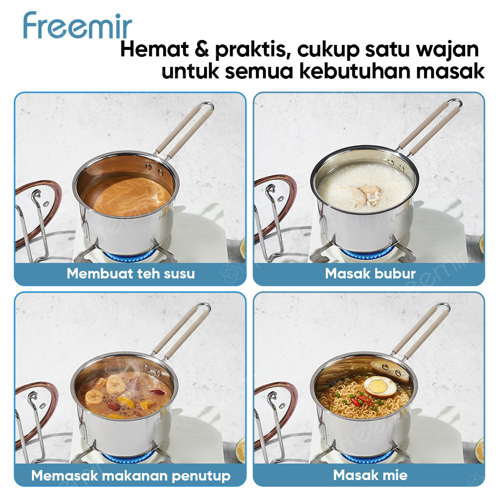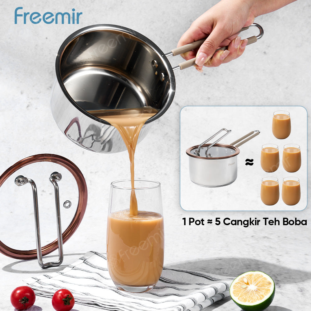 freemir 16 CM Stainless Steel Milk Pot with Glass Lid