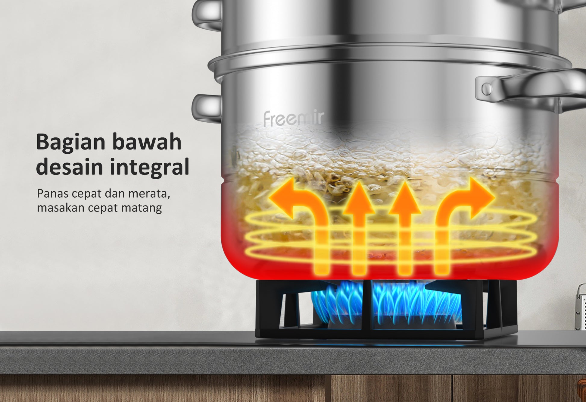 2. Kapasitas panci besar, dilengkapi dengan alas pengukus berkualitas tinggi.