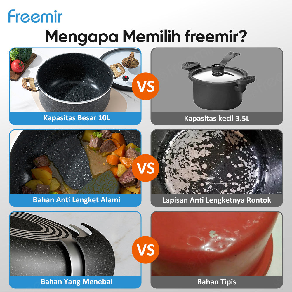 Masak dalam jumlah besar kini lebih mudah dan efisien dengan Freemir 30cm 10L Large Capacity Micro Pressure Deep Pot – Black. Panci berkapasitas besar ini terbuat dari aluminium alloy 3003# yang kuat dan ringan, dilengkapi dengan tutup kaca tempered premium 4.8mm dan sistem micro pressure untuk mempercepat proses memasak tanpa kehilangan cita rasa alami bahan makanan. Dengan desain elegan warna hitam motif titik dan gagang kayu gelap yang stylish, panci ini menjadi perpaduan sempurna antara fungsi profesional dan tampilan modern untuk dapur Anda.