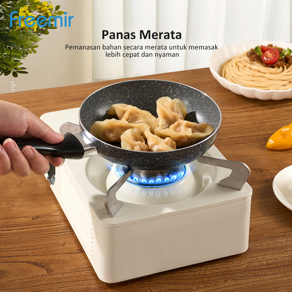 Wajan Freemir 16cm Anti Lengket hadir dengan desain kompak dan fungsional, ideal untuk memasak telur, pancake, atau menu sarapan praktis. Dibuat dari aluminium alloy 3003# berkualitas tinggi, wajan ini memiliki lapisan ganda cat air food grade di bagian dalam dan lapisan luar tahan panas yang mampu menahan suhu tinggi hingga 380°C tanpa mudah mengelupas.
